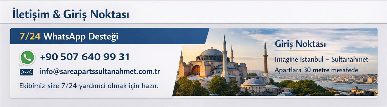 Check-in and check-out procedures are carried out at Imagine Istanbul – Sultanahmet, located just 30 meters from the apartment.